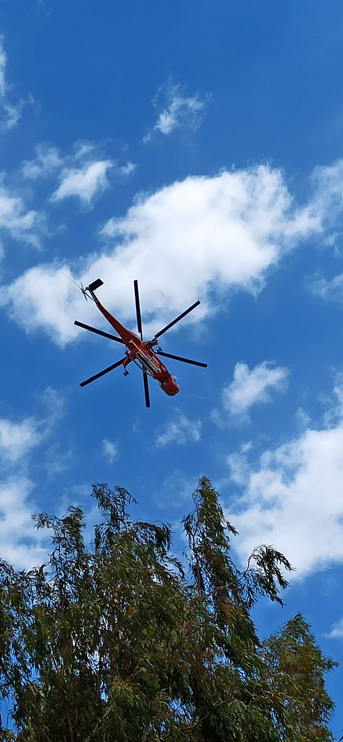 Ελικόπτερο S-64 της Erickson Incorporated νωρίτερα σήμερα στην περιοχή της Ελευσίνας. Ευχαριστούμε τον κ. Βασίλη Βραχνό για την εικόνα!