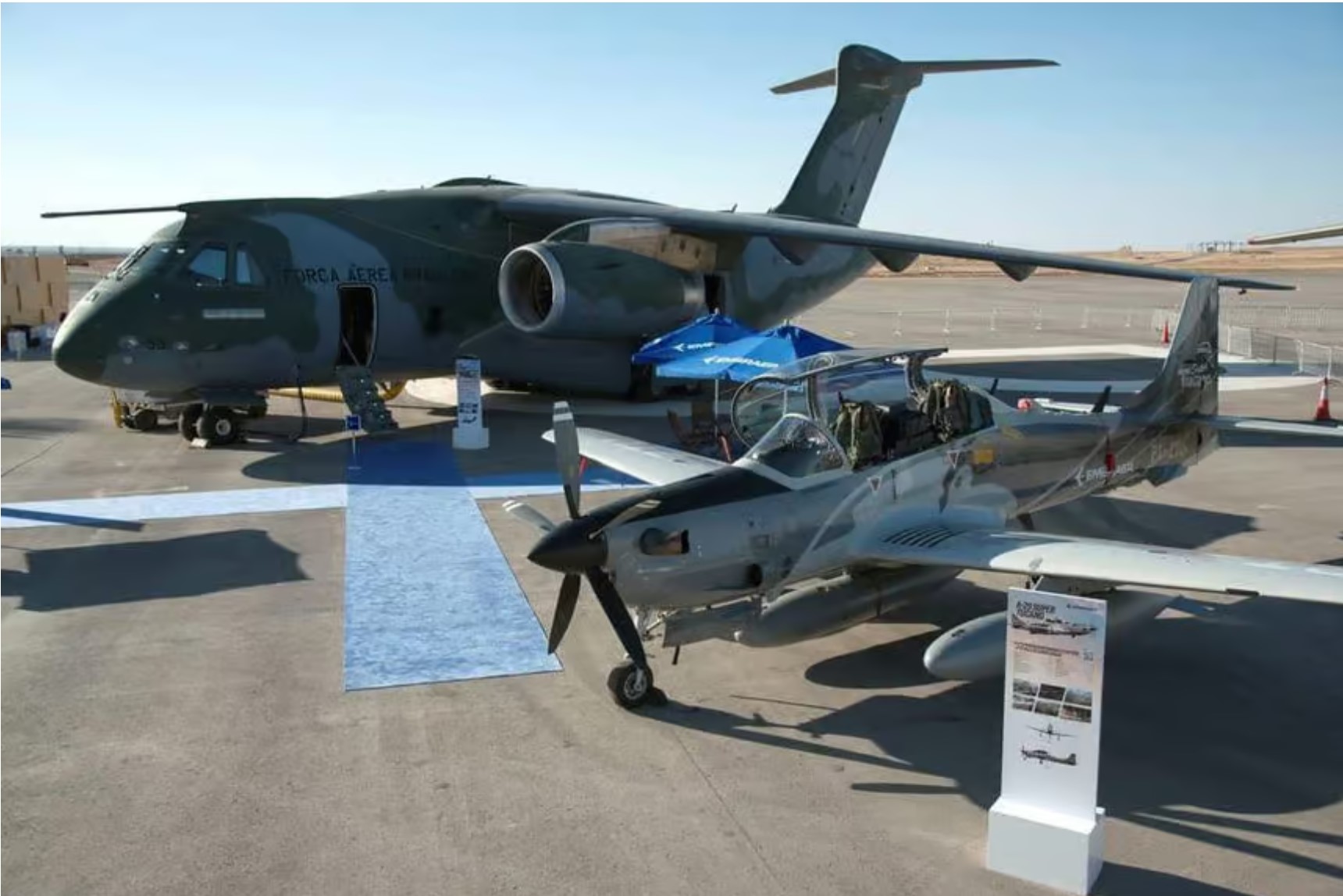 Η βραζιλιάνικη Embraer παρουσιάζει το μεταγωγικό C-390 στην έκθεση World Defense Show 2024, στο Ριάντ, στοχεύοντας στο πρόγραμμα αντικατάστασης των C-130H της Αεροπορίας της Σαουδικής Αραβίας.