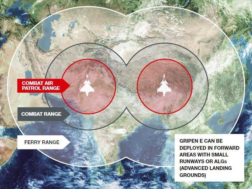 Με μια ανάρτηση στο λογαριασμό στο Twitter που προωθεί το Gripen E για την Ινδία, απεικονίζεται η εμβέλεια του μαχητικού.