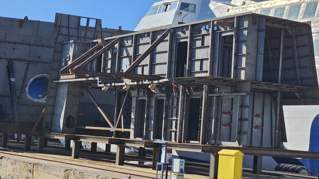 Σημαντική η σημερινή ημέρα για την Ελληνική ναυπηγοεπισκευαστική νιομηχανία και ειδικά για τα Ναυπηγεία Σαλαμίνας, καθώς παραδόθηκαν πέντε τμήματα (blocks) κύτους, που προορίζονται για την τρίτη φρεγάτα FDI του Πολεμικού Ναυτικού, την F-603 ”Φορμίων”.