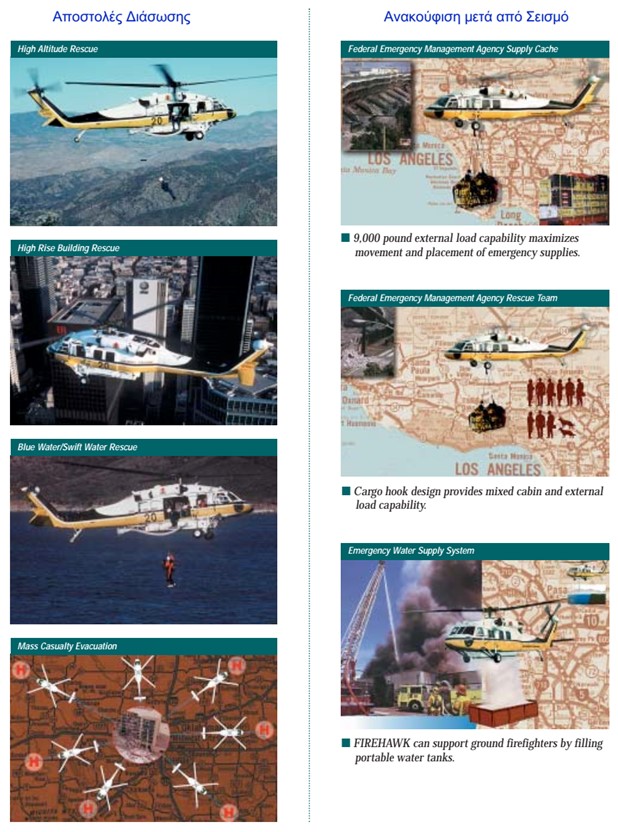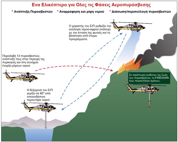 Τονίζουμε, πως τα FireHawk κατασκευάζονται στην Ευρώπη, και συγκεκριμένα στην Πολωνία, συνεπώς αν τυχόν αγοραστούν με ευρωπαϊκά κονδύλια, δεν θα έχουμε “γκρίνιες” από Βρυξέλλες μεριά. Τι είναι λοιπόν το FireHawk; Παράγωγο του ελικοπτέρου S-70/H-60 «Black Hawk» για αεροπυρόσβεση, έρευνα-διάσωση, αεροδιακομιδές, μεταφορά εφοδίων και ανακούφιση από φυσικές καταστροφές.