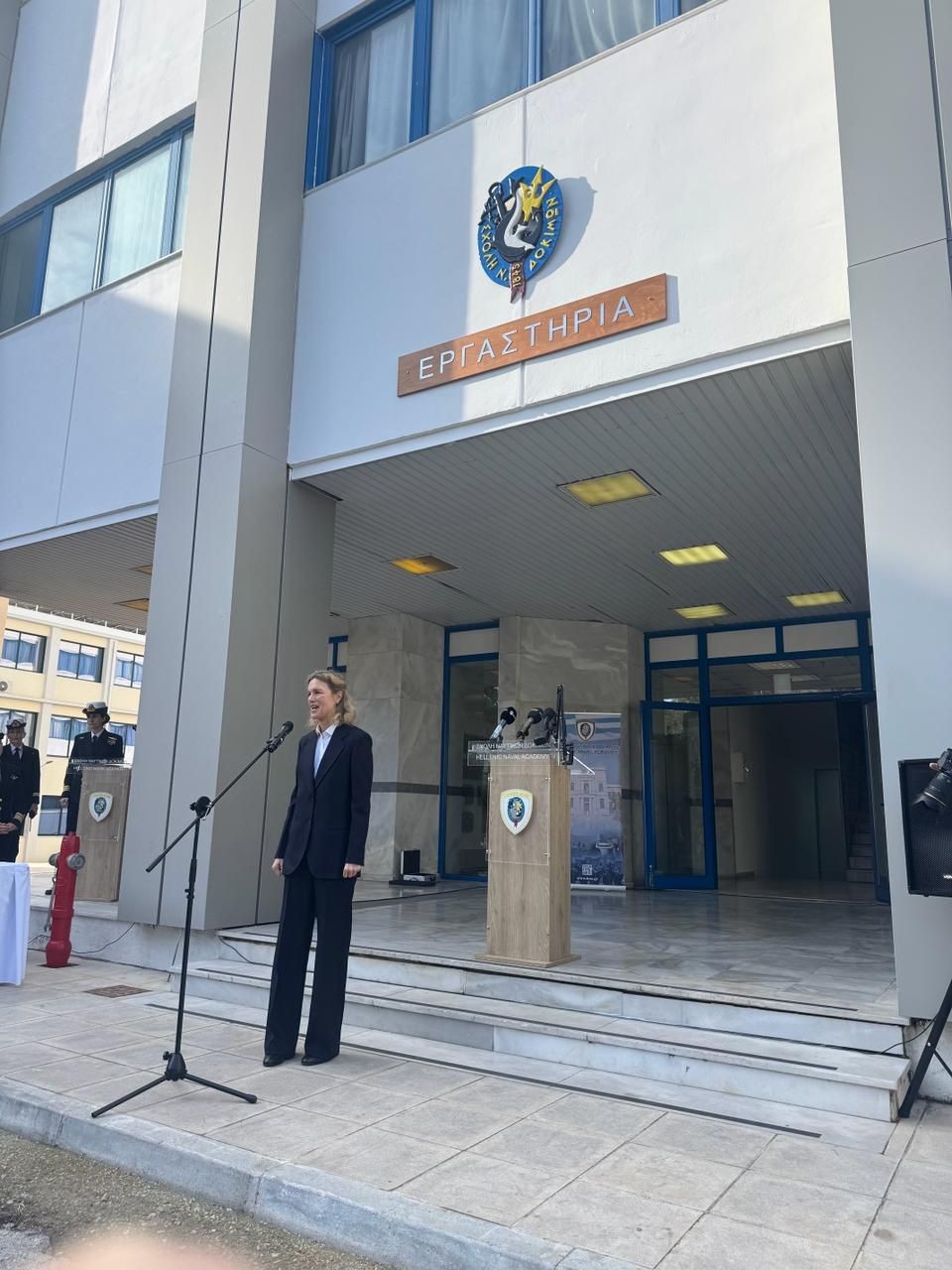 «Αγαπητή μας Ιωάννα, Η παρουσία σήμερα εδώ όλων μας είναι μια ιδιαίτερη χαρά και μια μεγάλη τιμή. Εδώ είναι το προπύργιο της ναυτικής μας παράδοσης, το προπύργιο της ισχύος του Στόλου μας.