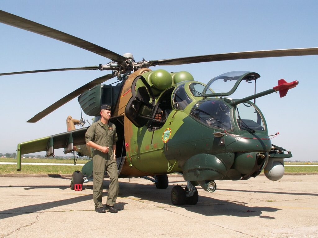 Η βαλκανική χώρα έχει 10 Mi-24V (με σειριακό αριθμό 201-210) και δύο Mi-24K (211, 212) που αποκτήθηκαν μεταχειρισμένα το 2021 από την Ουκρανία. Έξι από αυτά (όλα Mi-24V – τα 201, 202, 205, 207, 209, 210) εκσυγχρονίστηκαν από την Elbit System την περίοδο 2004-2010, με δύο (209, 210) να είναι επιχειρησιακά. Τα υπόλοιπα τέσσερα εκσυγχρονισμένα ελικόπτερα δεν είναι επιχειρησιακά, αλλά είναι σε πολύ καλή κατάσταση που επιτρέπει την επιστροφή τους σε υπηρεσία μετά την απαραίτητη βαριά συντήρηση. Τα υπόλοιπα Mi-24 (203, 204, 206, 208, 211, 212) έχουν καθηλωθεί εδώ και 15-20 χρόνια. Παρά το καθεστώς τους, μπορούν ακόμα να χρησιμεύσουν ως πολύτιμη πηγή ανταλλακτικών για τις ουκρανικές Ένοπλες Δυνάμεις.