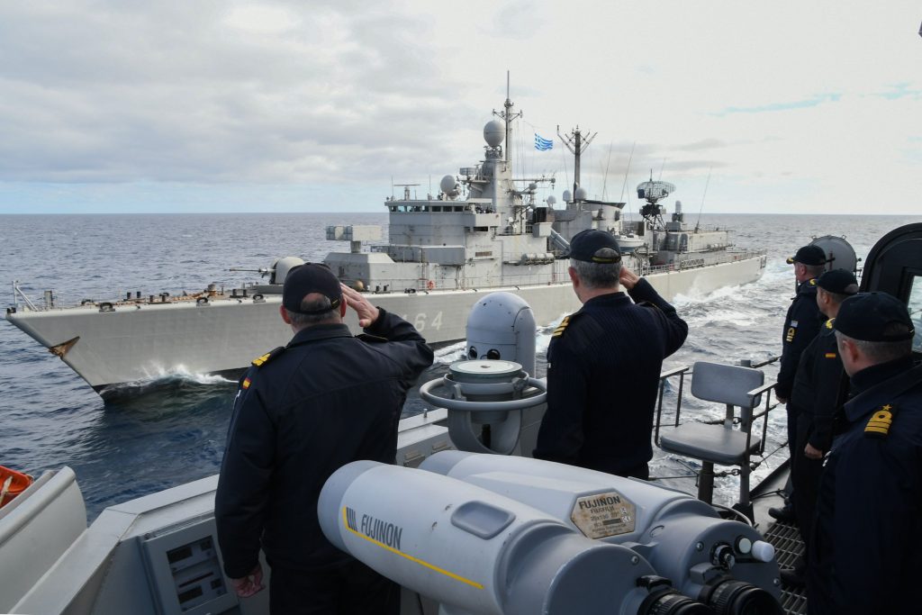 Όπως η Συμμαχική Ναυτική Δύναμη Standing NATO Maritime Group 2 (SNMG2) ενημερώνει στο Twitter, το πρωί έγινε συνεκπαίδευση PASSEX (Passing Exercise) μονάδων του ΠΝ και μαχητικών F-16 της ΠΑ με συμμαχικά πλοία.