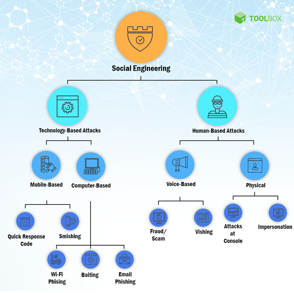Η κοινωνική μηχανική στηρίζεται κυρίως στην ανθρώπινη περιέργεια, την απληστία, την έπαρση και την άγνοια. Αυτά τα ανθρώπινα “ελαττώματα”, επιτρέπουν την απόσπαση πολύτιμων πληροφοριών από επιτήδειους που γνωρίζουν πως να τους χειραγωγήσουν. Κοινώς, είναι μια κλασική τακτική κυβερνοεγκλήματος.