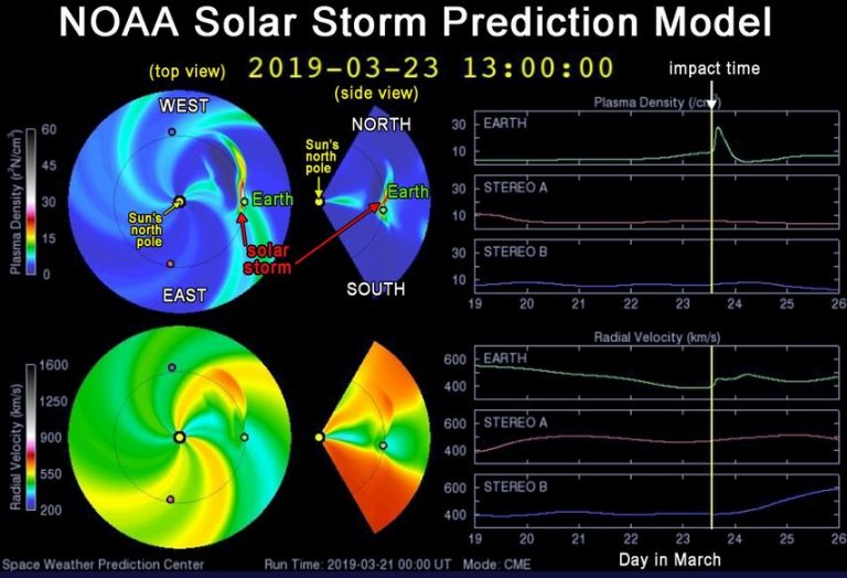 Direct Hit! Both #NOAA & #NASA prediction models agree we have an Earth-directed #solarstorm that will impact around 12pm March 23! This one is dense & strong so it could pack a decent punch! Expect #hamradio & #GPS disruptions on Earth's nightside, plus #aurora to mid-latitudes! pic.twitter.com/H3carfQR5m