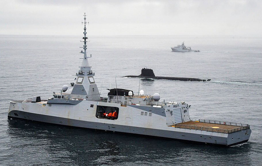 Άλλη μια ωραία εικόνα με την πρώτη γαλλική FDI-FR Amiral Ronarh (D660) κάπου έξω από τις ακτές της Βρετάνης, ενώ διεξάγει δοκιμές εν πλω μαζί με ένα υποβρύχιο κλάσης Suffren.