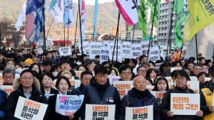 Η συνομοσπονδία κορεατικών συνδικάτων, η οποία μετρά όχι λιγότερα από 1,2 εκατ. μέλη, χαρακτήρισε «παράλογο και αντιδημοκρατικό μέτρο» την κίνηση που αποπειράθηκε ο κ. Γιουν, προσθέτοντας πως με αυτήν «υπέγραψε το τέλος» της εξουσίας του.