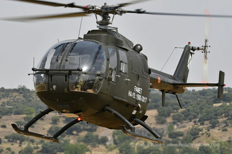 Το Bo105 υπηρέτησε στις τάξεις του Ισπανικού Στρατού για 37 χρόνια συμπληρώνοντας περισσότερες από 117.000 ώρες πτήσης. Κατά τη διάρκεια αυτή απωλέσθηκαν σε ατυχήματα τρία ελικόπτερα, το τελευταίο το 2008. Το Eurocopter EC135, αποτελεί εξέλιξη του Bo 105 που πρωτοπέταξε το 1995.