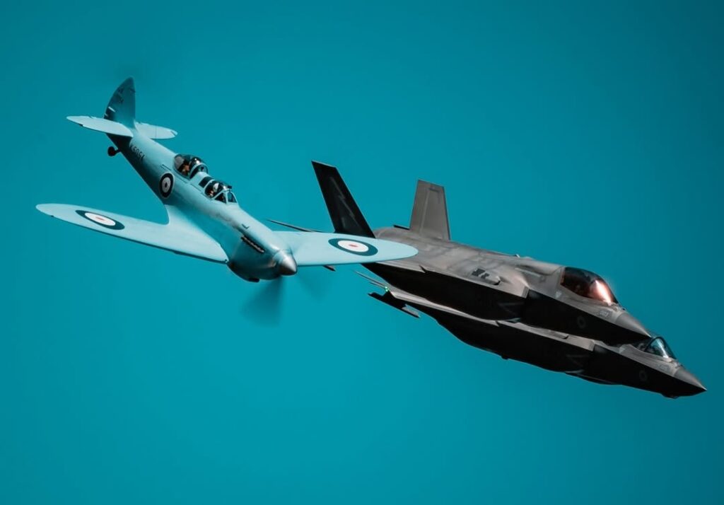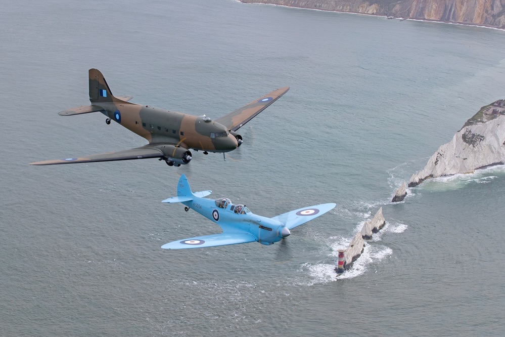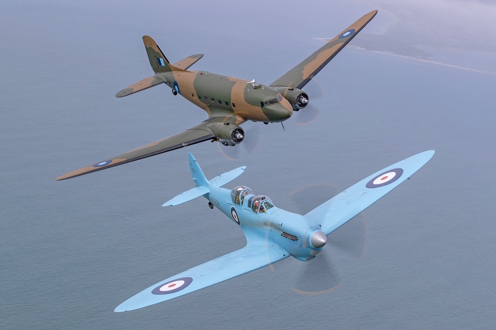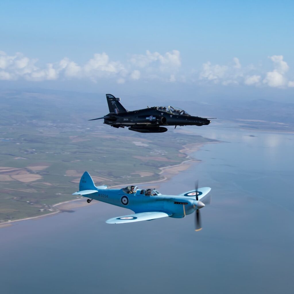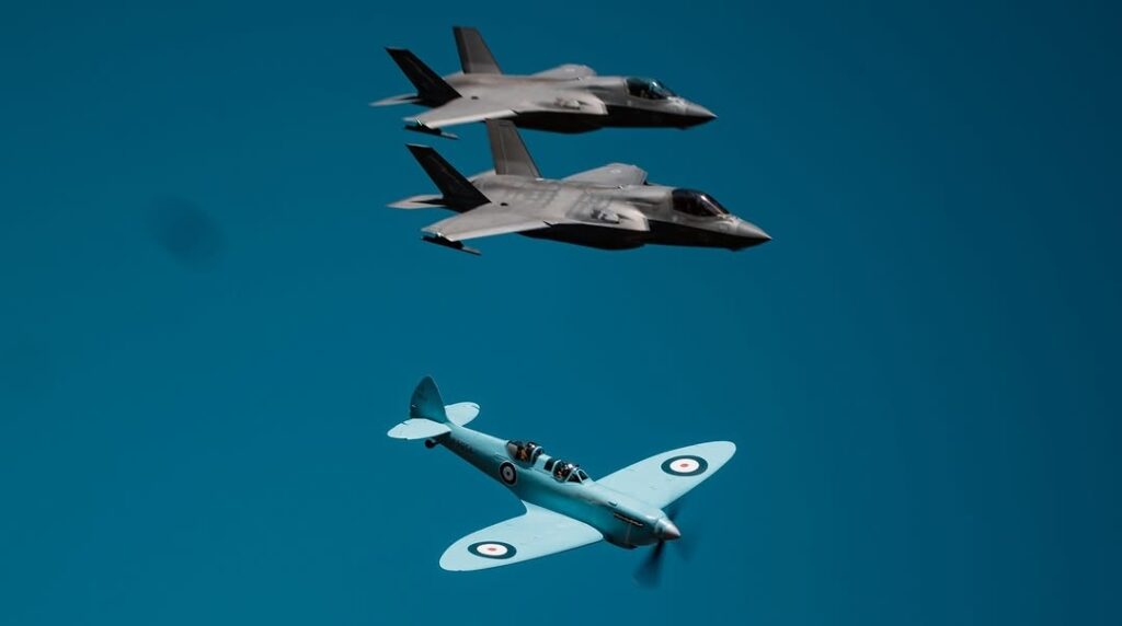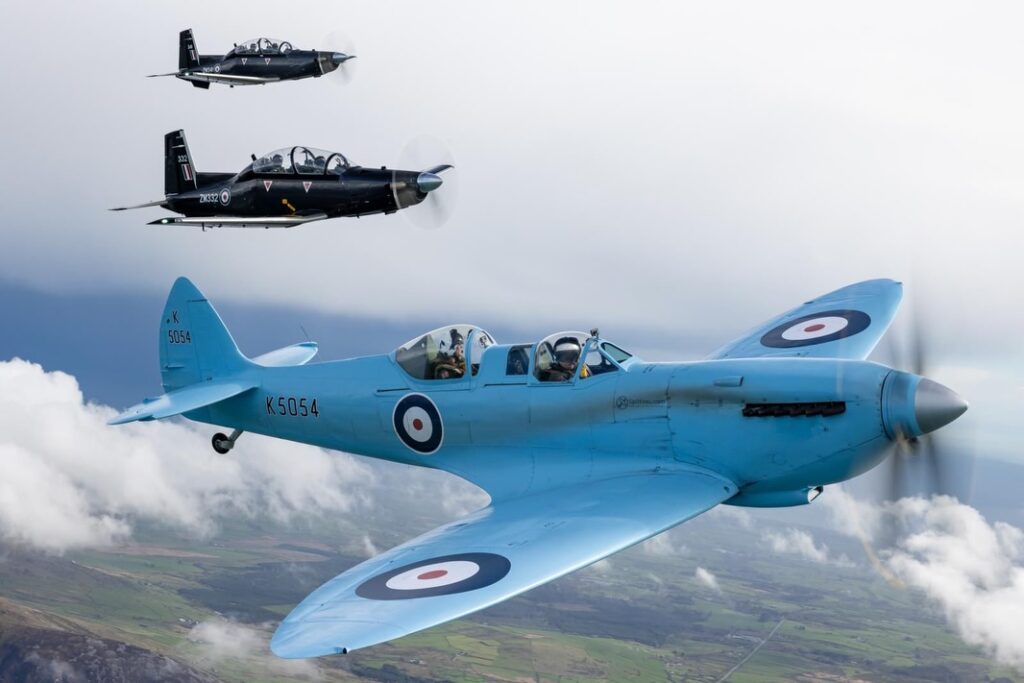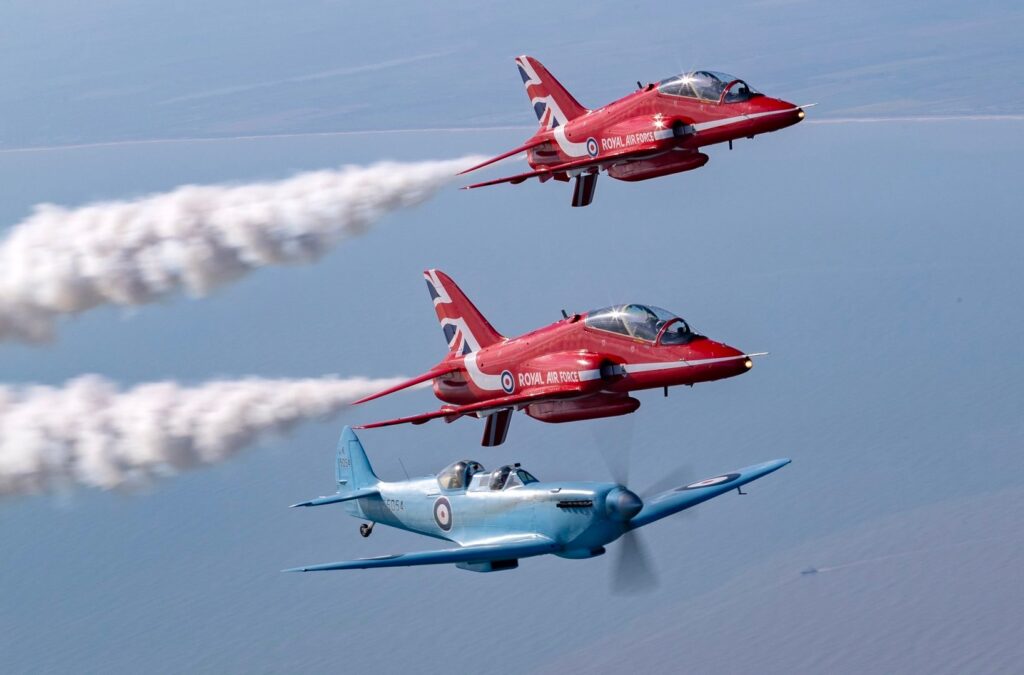 Σε μια από αυτές τις πτήσεις λοιπόν, ο ελικοφόρος θρύλος του Β’ Παγκοσμίου βρέθηκε να… καταδιώκει μαχητικά F-35B! Ενώ σε άλλες το συνόδεψαν τα αεροσκάφη του Σμήνους Επιδείξεων Red Arrows, εκπαιδευτικά Hawk T2 αλλά και Pilatus PC-21, όπως και μια Ντακότα.