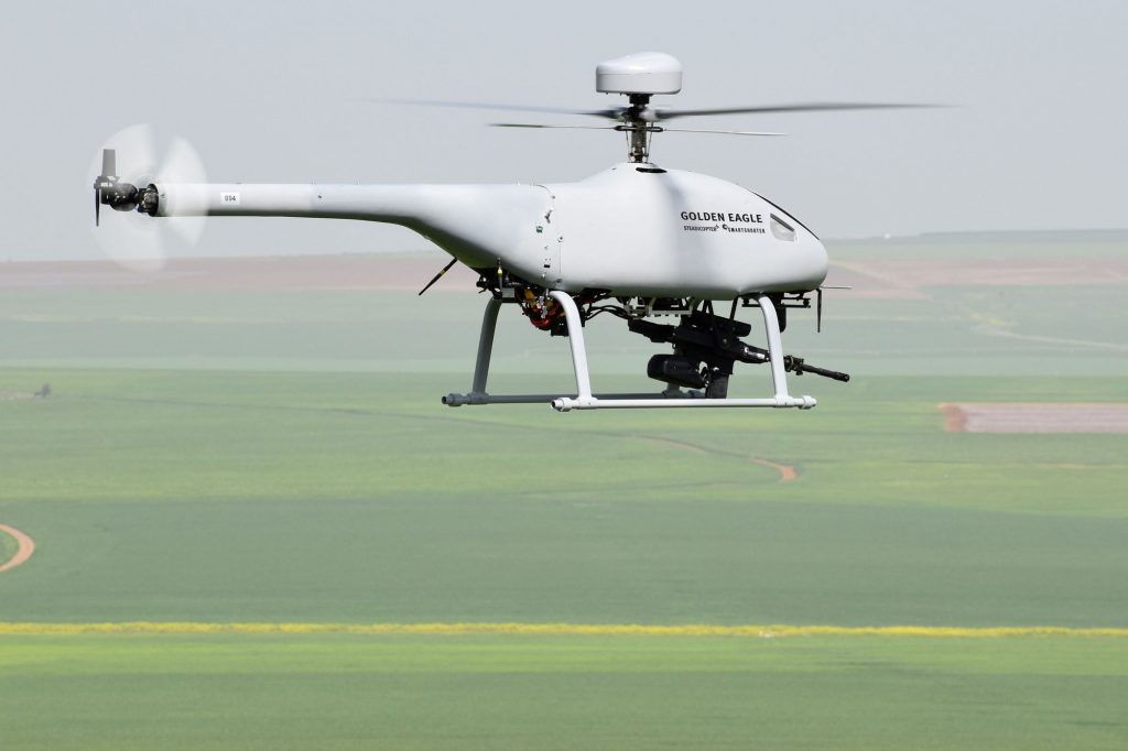 Η ισραηλινή Steadicopter παρουσίασε πρόσφατα το Golden Eagle, ένα μη επανδρωμένο ελικόπτερο, με ικανότητα μεταφοράς ενός ελαφρού πυργίσκου οπλισμού, κατασκευασμένου από την Smart Shooter. Το σύστημα έχει ικανότητα αυτόνομης στόχευσης τόσο κινητών όσο και ακίνητων στόχων, με χρήση τεχνητής νοημοσύνης, και βέβαια πυροδότησης των όπλων. Τα τελευταία μπορεί να είναι μια ποικιλία τυφεκίων, ακόμη και ελεύθερου σκοπευτή, εκτοξευτών βομβίδων κ.λπ.
