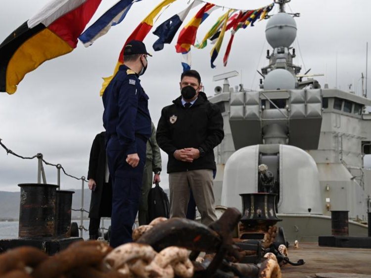 Ο υφυπουργός ενημερώθηκε από τον κυβερνήτη για την αποστολή της φρεγάτας, συνομίλησε και αντάλλαξε ευχές με το πλήρωμα της, το οποίο και βρίσκεται σε υψηλότατη επιχειρησιακή ετοιμότητα ανάληψης οποιασδήποτε επιχειρησιακής δράσης.