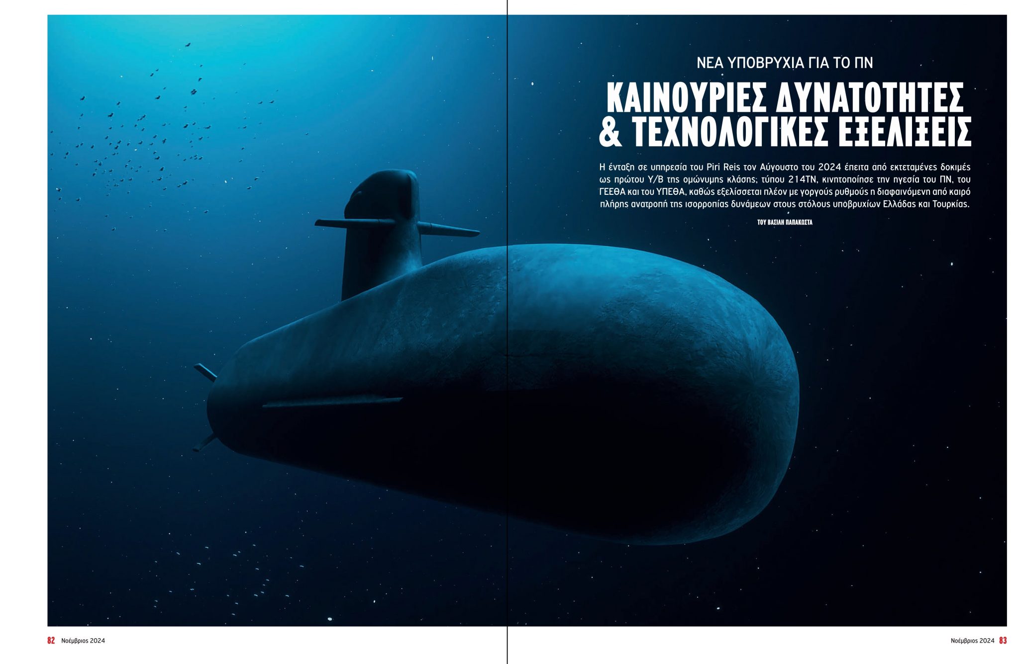 Στην 18σελιδη εμπεριστατωμένη ανάλυσή μας στο τεύχος που κυκλοφορεί («Πτήση» 53, Νοέμβριος 2024) εξετάζουμε το δυνητικό ναυπηγικό πρόγραμμα για νέα Υ/Β που θα αντικαταστήσουν τα απαρχαιωμένα 209/1100 και τα παλαιότερα 209/1200 και παρουσιάζουμε όλες τις προσφερόμενες λύσεις και τις διεθνείς εξελίξεις στις υποβρυχιακές πλατφόρμες και όπλα.