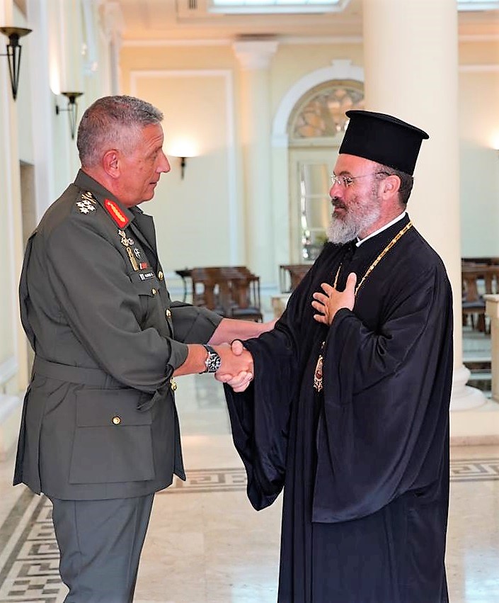 Την προηγουμένη και προ της άφιξής του στο Κάιρο, ο Αρχηγός ΓΕΕΘΑ επισκέφθηκε το Παλαίφατο Πατριαρχείο Αλεξανδρείας και πάσης Αφρικής παρουσία του Γενικού Προξένου Αλεξάνδρειας Σύμβουλου Πρεσβείας Α΄   Αθανάσιου Κοτσιώνη, όπου είχε εγκάρδια συνάντηση με τον Σεβασμιώτατο Μητροπολίτη Πηλουσίου   Νάρκισσο. Συζήτησαν θέματα αμοιβαίου ενδιαφέροντος με ιδιαίτερη έμφαση στο σημαντικό Ποιμαντικό και Ιεραποστολικό έργο του Πατριαρχείου, το οποίο οι Ελληνικές Ένοπλες Δυνάμεις πάντοτε υποστηρίζουν.