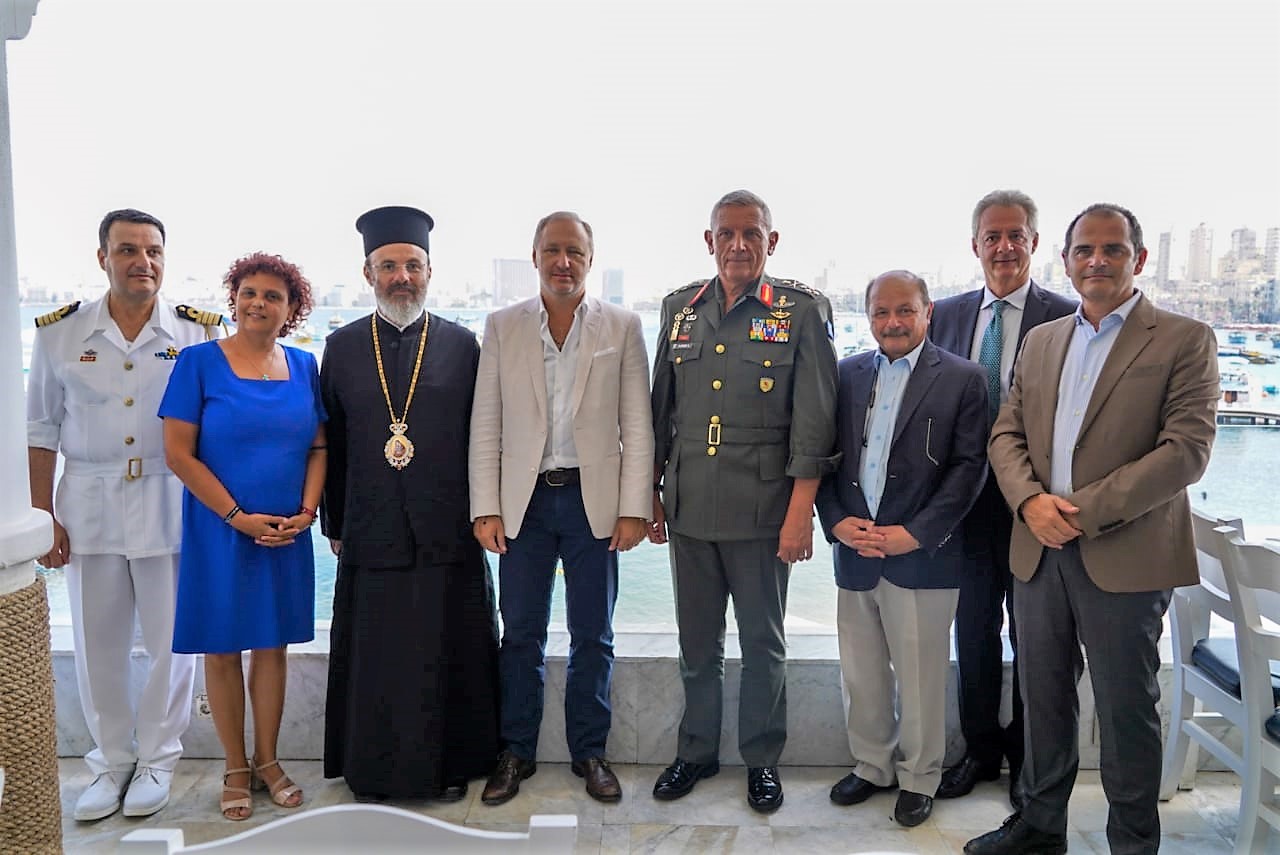 Στην συνέχεια και συνοδευόμενος από τον Γενικό Πρόξενο, επισκέφθηκε τον Ελληνικό Ναυτικό Όμιλο Αλεξάνδρειας (ΕΝΟΑ) όπου συναντήθηκε με τον Πρόεδρο της Ελληνικής Κοινότητας Αλεξάνδρειας (ΕΚΑ)  Ιωάννη Σιόκα και τα Μέλη της, με τους οποίους είχε την ευκαιρία να συζητήσει και να τους συγχαρεί για τις σημαντικές δράσεις τους, οι οποίες ενισχύουν τους δεσμούς φιλίας και συνεργασίας με την Αραβική Δημοκρατία της Αιγύπτου και τις Ένοπλες Δυνάμεις της.