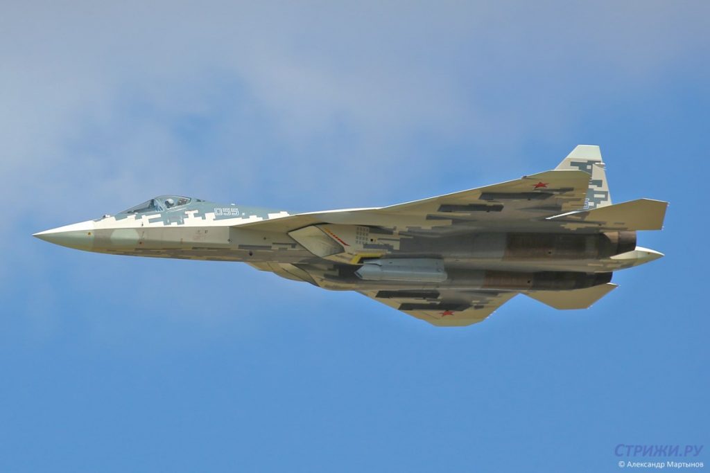 Ένα εκ των πρωτότυπων του προγράμματος ανάπτυξης Su-57 εμφανίστηκε πρόσφατα με προσαρμοσμένο το ατρακτίδιο στοχοποίησης 101KS-N κατά την διάρκεια πτήσης.