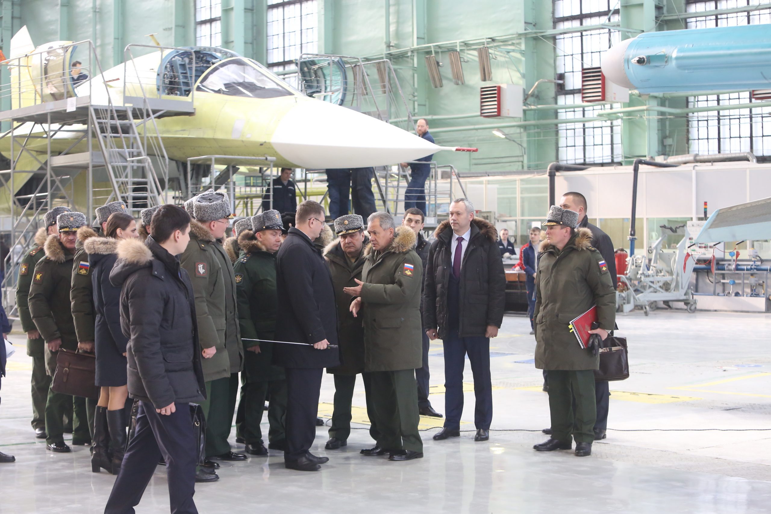 Από την επίσκεψη του Ρώσου υπουργού Άμυνας, στρατηγού Sergei Shoigu στο Novosibirsk Aviation Plant όπου επιθεώρησε εργασίες σε Su-34. Την ημέρα της επίσκεψής του στο εργοστάσιο υπήρχαν τόσο νέες κατασκευές όσο και αεροπλάνα που είχαν παραδοθεί το 2016 για «τροποποιήσεις».