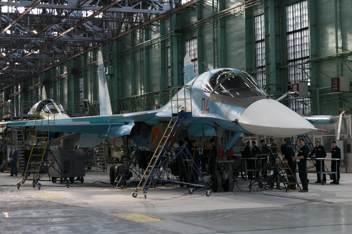 Από την επίσκεψη του Ρώσου υπουργού Άμυνας, στρατηγού Sergei Shoigu στο Novosibirsk Aviation Plant όπου επιθεώρησε εργασίες σε Su-34. Την ημέρα της επίσκεψής του στο εργοστάσιο υπήρχαν τόσο νέες κατασκευές όσο και αεροπλάνα που είχαν παραδοθεί το 2016 για «τροποποιήσεις».