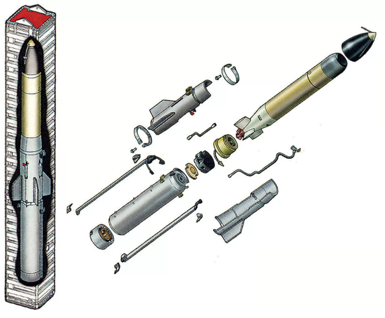 Σχήμα 4: Τα κύρια στοιχεία που περιλαμβάνει ένας πύραυλος VLA είναι ο κινητήρας booster, το αεροδυναμικό κέλυφος (airframe), το αλεξίπτωτο και η ανθυποβρυχιακή τορπίλη Mk-54.
