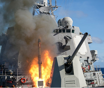 Σχήμα 5: Εκτόξευση ανθυποβρυχιακού βλήματος VL ASROC (VLA), από το σταθερό κατακόρυφο εκτοξευτήρα Mk-41 VLS. Το σύστημα VL ASROC βρίσκεται σε υπηρεσία στο πολεμικό ναυτικό των ΗΠΑ και της Ιαπωνίας.