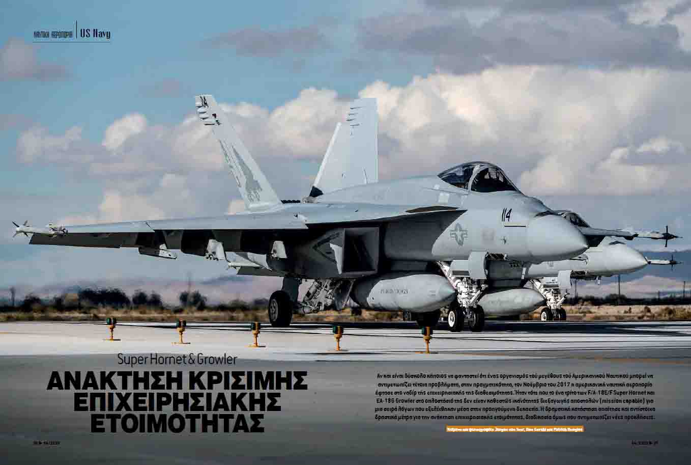 Στο τρέχον τεύχος μας (ΜΑΪΟΣ 2020) υπάρχει μια μεγάλη αναφορά στον “γόρδιο δεσμό” που αντιμετώπισε το Αμερικανικό Ναυτικό με τον στόλο τω Super Hornet και Growler και την πορεία προς ανάκτηση πλήρους επιχειρησιακής διαθεσιμότητας που είχε απολεστεί στα τέλη της προηγούμενης δεκαετίας