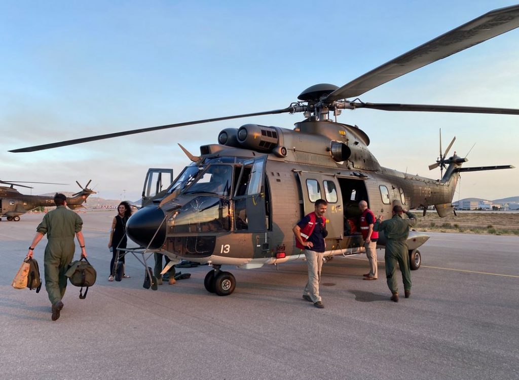 Τρια ελικόπτερα Super Puma της 🇨🇭Αεροπορίας και το πλήρωμά τους – ανυπόμονοι να προσφέρουν εναέρια βοήθεια για την καταπολέμηση των πυρκαγιών – μόλις καλώς ορίστηκαν στην 🇬🇷από τον Marc Bruchez, Chargé d'affaires a.i. στο Διεθνές Αεροδρόμιο Αθηνών. #CHGR #StrongerTogether pic.twitter.com/8OFfeT0yRJ