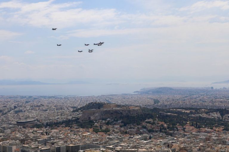 Συμβολική πτήση σχηματισμού μαχητικών αεροσκαφών και ελικοπτέρων του ΝΑΤΟ πραγματοποιήθηκε, σήμερα, Παρασκευή 13 Μαΐου, μεταξύ 15:15 και 15:40, πάνω από την Ακρόπολη, στο πλαίσιο της άσκησης Tiger Meet.