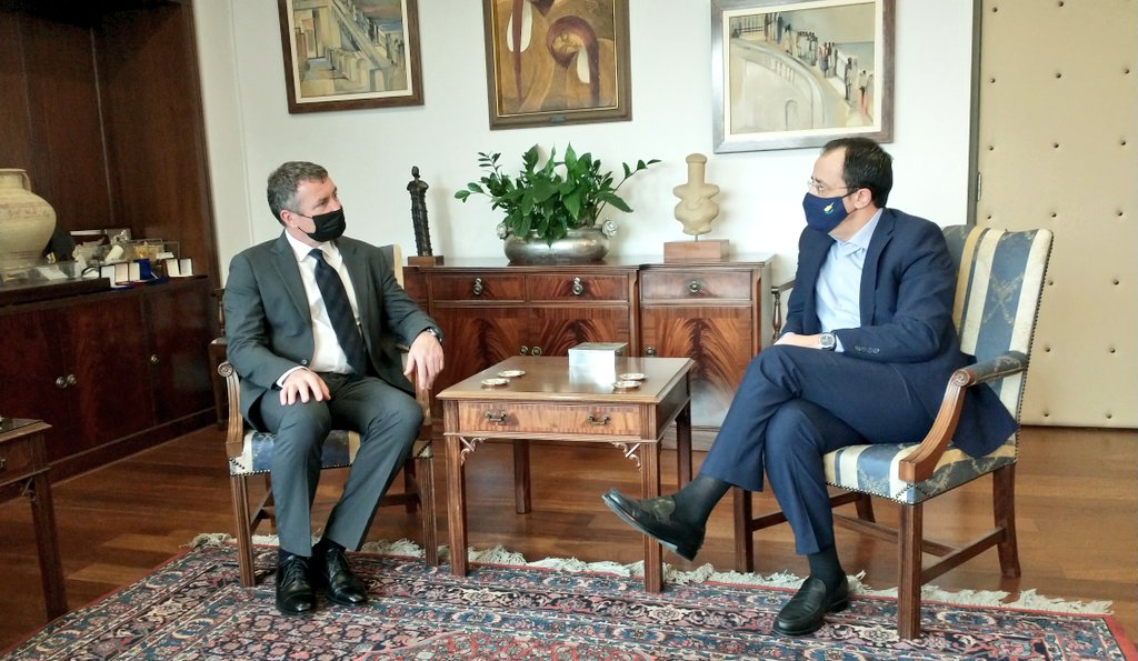 Foreign Minister @Christodulides met earlier with #JohnArdill, Senior Vice President of @exxonmobil, discussing #energy developments in #EastMed and broader region. pic.twitter.com/9TRgm7JYAh