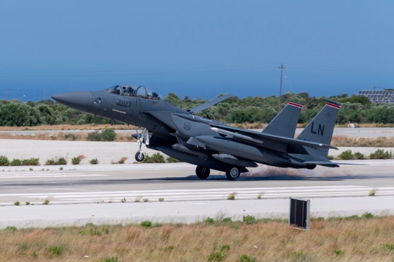 Το αεροπορικό κλιμάκιο των ΗΠΑ, το οποίο αποτελείται από προσωπικό και 14 αεροσκάφη F-15E της 492 Fighter Squadrom (FS) της US Air Forces in Europe – USAFE, ολοκλήρωσε τη μεταστάθμευση του στο Αεροδρόμιο της Σούδας την Πέμπτη 27 Μαΐου 2021.
