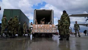 Τρίτον, ο υπουργός ‘Αμυνας επιβεβαιώνει το αμερικανικό υπουργείο ‘Αμυνας για νέες αποστολές όπλων και πυρομαχικών (βαρύτερου τύπου;) χωρίς να αισθάνεται την ανάγκη να δώσει καμιά εξήγηση, πώς γίνεται να το πληροφορείται αυτό ο ελληνικός λαός και τα κόμματα από το αμερικανικό υπουργείο ‘Αμυνας. Η ελληνική κυβέρνηση, όχι μόνο συνεχίζει να στέλνει όπλα, ίσως και βαρύτερα, αλλά επιπλέον ντρέπεται για αυτό και κρύβεται γιατί φοβάται την αντίδραση της κοινωνίας.