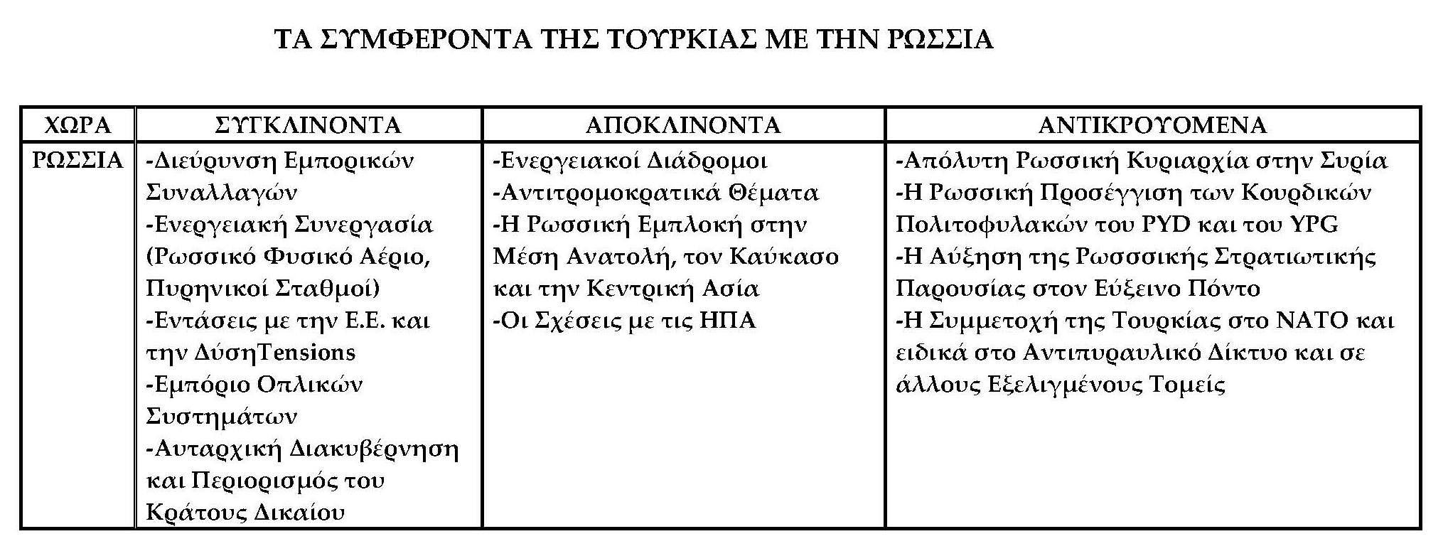 Σχεδόν επί μία δεκαετία η τουρκική δημοκρατία εξελίσσεται με εντεινόμενους ρυθμούς σε ένα ισλαμικό αυταρχικό καθεστώς προκαλώντας την ευαρέσκεια της Μόσχας και δημιουργώντας νέες ευκαιρίες και προκλήσεις για να πληγούν δυτικού τύπου θεσμοί. Η απογοήτευση της τουρκικής κοινής γνώμης μετά την αποτυχία της διαδικασίας για την πορεία ένταξης στην ΕΕ και η ανάδυση ευρασιατικών τάσεων στην Άγκυρα, ενισχύουν τους δεσμούς της με την Μόσχα, αν και μία μακροπρόθεσμη στιβαρή συμμαχία απαιτεί την αποχώρηση της Τουρκίας από το ΝΑΤΟ και την εγκατάλειψη των πρώην εταίρων της ή έστω σε πρώτο στάδιο την άρνηση κάθε μορφής υποστήριξης σε δυτικούς θεσμούς που στρέφονται κατά της Ρωσίας.