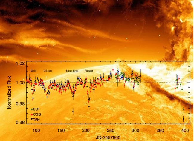 Αυτή τη φορά, η φωτεινότητα του KIC 8462852 που βρίσκεται σε απόσταση 1280 ετών φωτός, μειώθηκε κατά 4% στις 16 Μαρτίου, πριν επιστρέψει στα κανονικά επίπεδα και μόλις χθες, ξαναμειώθηκε κατά 5%. Πρόκειται για μεγάλο ποσοστό εάν αναλογιστούμε πως ένας πλανήτης που θα περνούσε μπροστά από το άστρο, θα μείωνε τη φωτεινότητα μόλις έως 1%.
