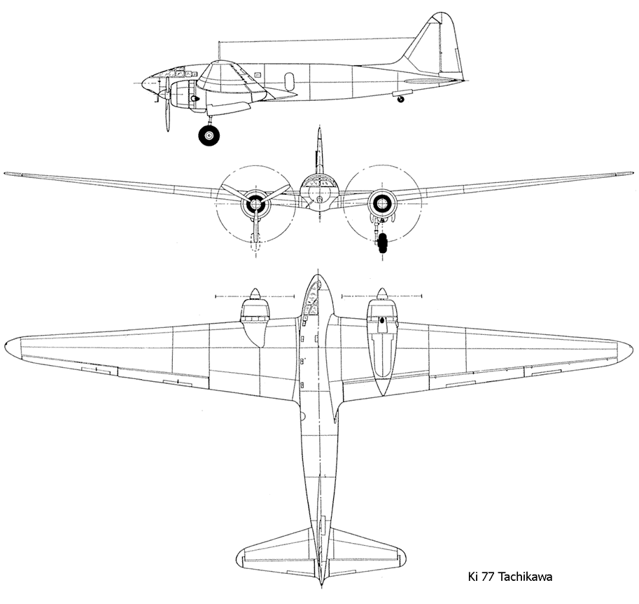 Δομικά, το Ki-77 ήταν δικινητήριο χαμηλοπτέρυγο με αρκετά λεπτή στρογγυλεμένη αεροδυναμική άτρακτο, συμπιεσμένο θάλαμο διακυβέρνησης και μονό κάθετο ουραίο. Στο μεσαίο τμήμα της υπήρχε χώρος καθισμάτων έξι επιβατών. Το σύστημα προσγείωσης ήταν συμβατικό, με όλους τους τροχούς να αναδιπλώνονται. Μπορούσε να πετάει σε ύψη μεταξύ 6.000 και 8.000 μέτρων με τις δεξαμενές, μόνο στις πτέργυγες, να χωρούν 11.155 λίτρα καυσίμου. Η συνολική χωρητικότητά τους ανέρχετο στα 11.600 λίτρα. Για την τροφοδοσία του είχαν επιλεγεί δύο δεκατετρακύλινδροι αερόψυκτοι αστεροειδείς Nakajima Ha-115 οι οποίοι έδιναν ισχύ 1.170 ίππων και περιέστρεφαν τρίφυλλες μεταλλικές πτέρυγες.