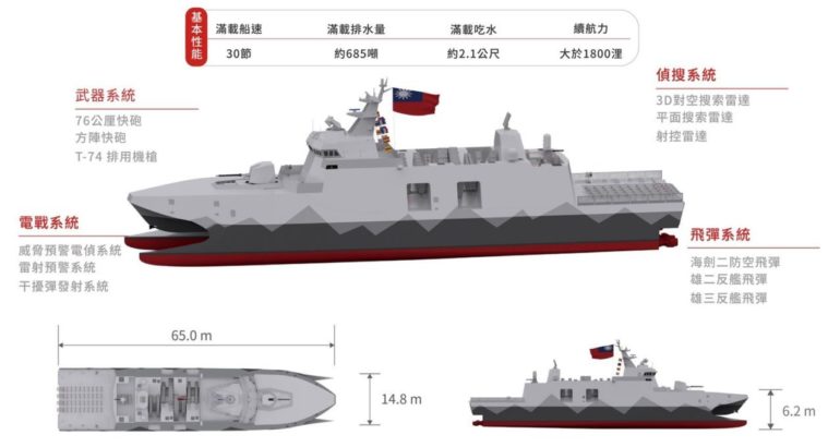 Η Ταϊβάν σε μια προσπάθεια να ενισχύσει τις ναυτικές της δυνάμεις ξεκίνησε τη ναυπήγηση τριών νέων κορβέτων σχεδίασης καταμαράν καθώς και τεσσάρων νέων πλοίων ναρκοπολέμου (ναρκοθέτιδες).
