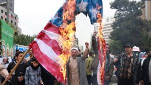 Μπροστά στην πρώην αμερικανική διπλωματική αποστολή, ύψωσαν ιρανικές και παλαιστινιακές σημαίες καθώς και σημαίες του λιβανικού σιιτικού κινήματος Χεζμπολάχ, που υποστηρίζεται από την ισλαμική Δημοκρατία.