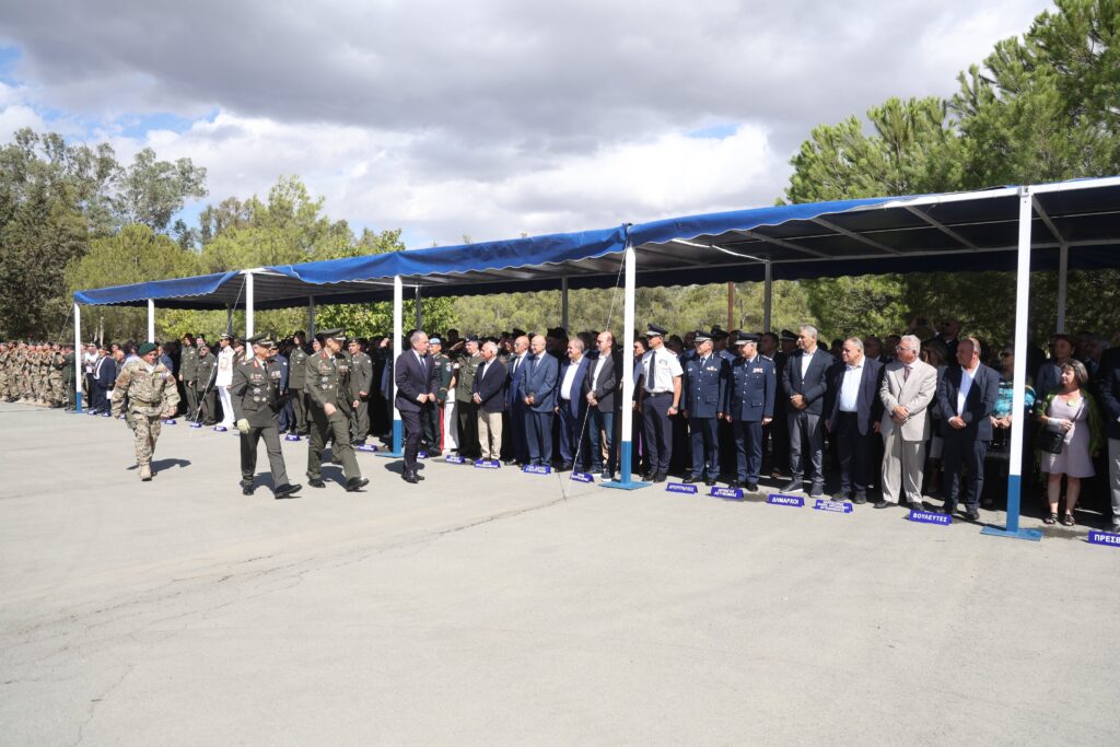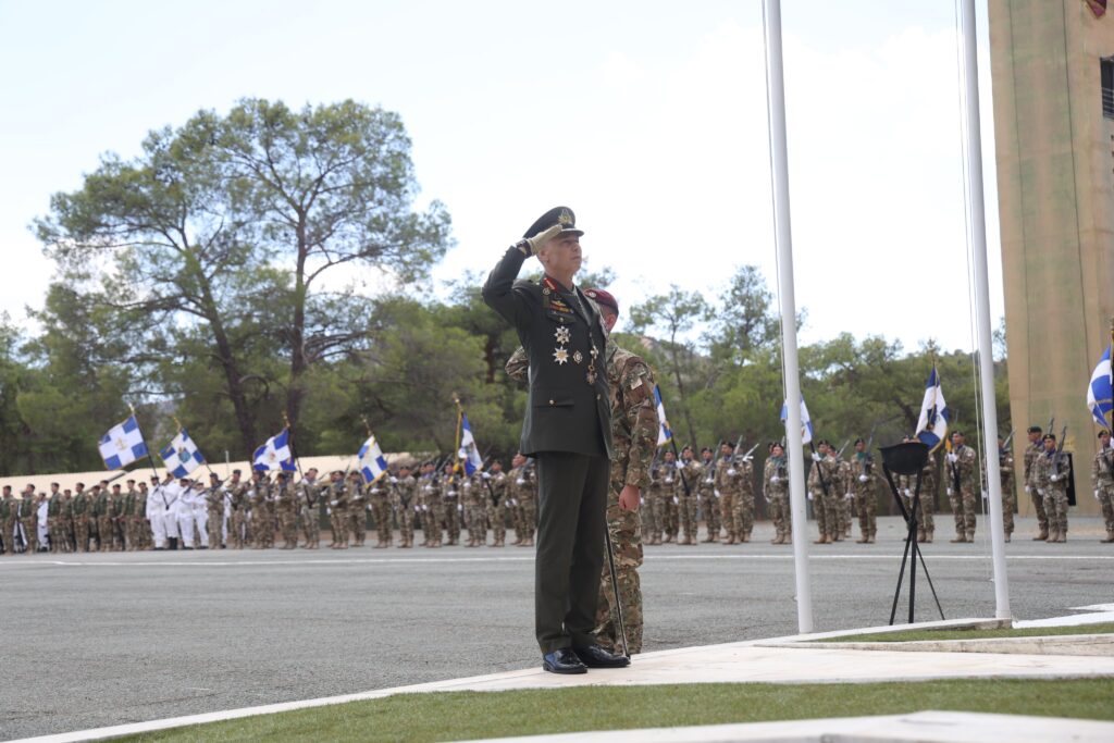 Διακατεχόμενος από συναισθήματα βαθύτατου σεβασμού και υπερηφάνειας, υποκλίνομαι με ευλάβεια στις πολεμικές Σημαίες των Σχηματισμών, Συγκροτημάτων και Μονάδων και αποτίω φόρο τιμής στους αθάνατους νεκρούς, που θυσιάστηκαν για την ελευθερία της μαρτυρικής μας Κύπρου.
