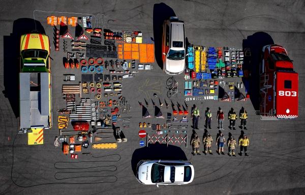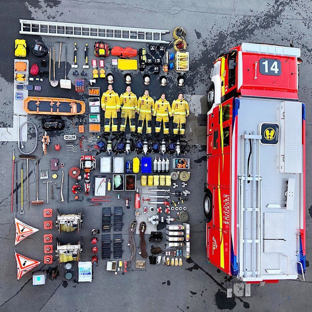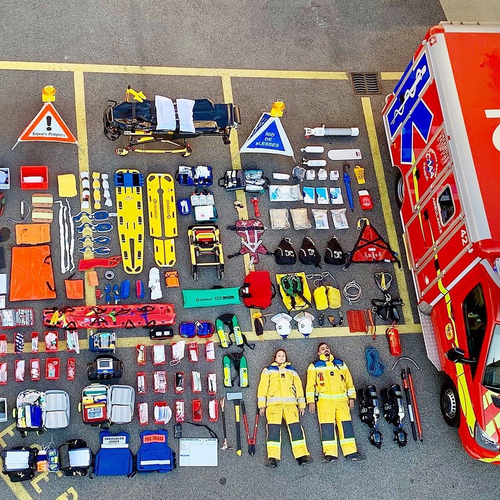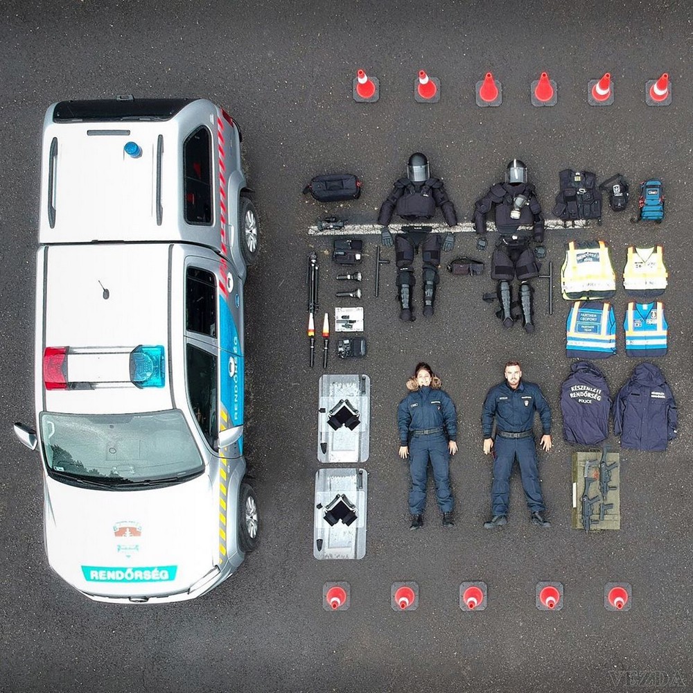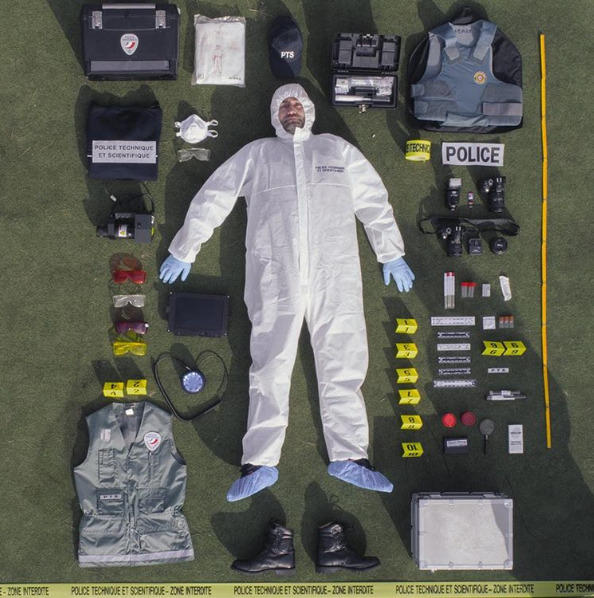 Ξεκίνησε σαν αστείο στις 1 Σεπτεμβρίου όταν η αστυνομία της Ζυρίχης δημοσιοποίησε μια φωτογραφία  στα ΜΚΔ με μια φωτογραφική κάτοψη της σκηνής όπου δυο αστυνομικοί ήταν ξαπλωμένοι δίπλα στο περιπολικό τους και όλος ο εξοπλισμός που συνήθως μεταφέρουν ήταν τακτοποιημένος τριγύρω τους. Έκτοτε αστυνομικά σώματα, υπηρεσίες εκτάκτων αναγκών και πιο πρόσφατα και στρατιωτικοί φορείς σήκωσαν το γάντι και απάντησαν με εκατοντάδες φωτογραφίες από όλο τον πλανήτη.