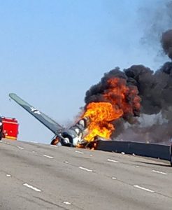 Συντριβή ενός North American T-6/SNJ με «εμφάνιση» FW190 σε αυτοκινητόδρομο ανατολικά του Λος Άντζελες.