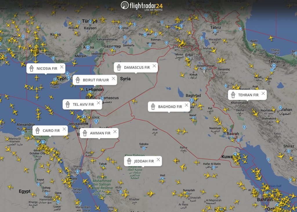 O εναέριος χώρος στη Μέση Ανατολή μετά την έναρξη της ιρανικής επίθεσης στο Ισραήλ
