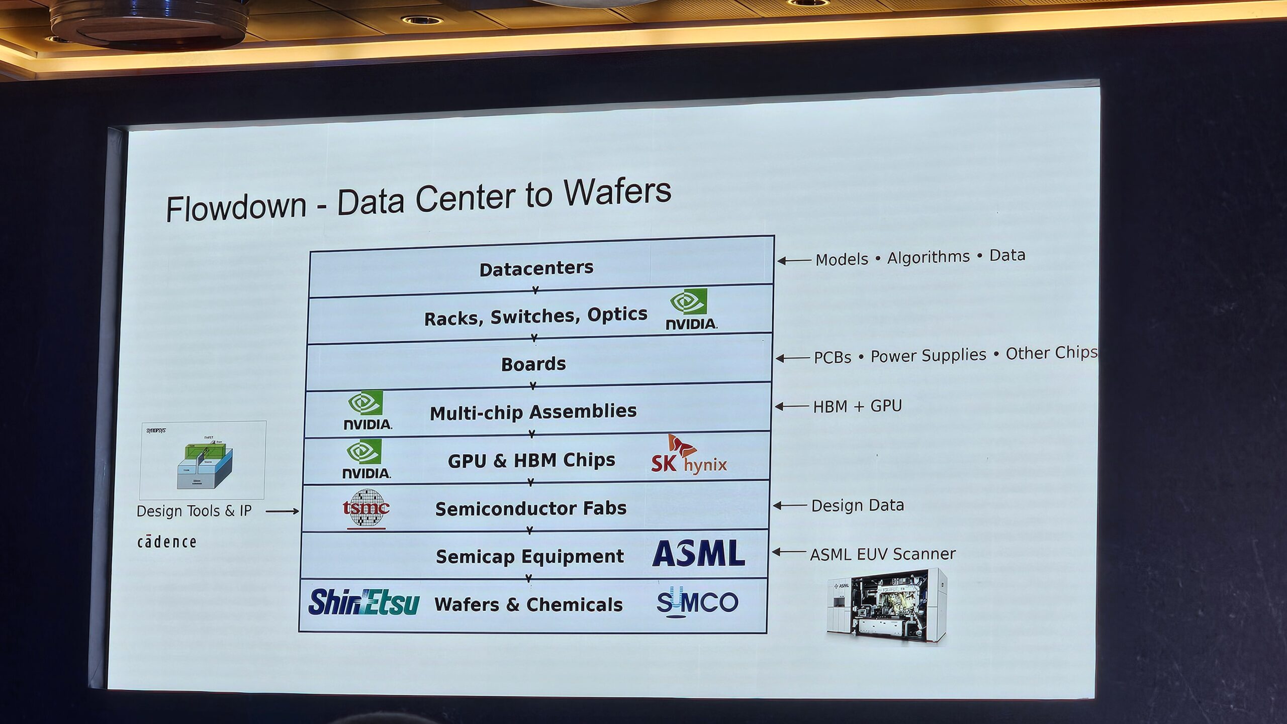 Η διάλεξη έκλεισε με μια κριτική ματιά στους κινδύνους αλυσίδας εφοδιασμού. Χάρτες δείχνουν την εξάρτηση από την Ασία (εκεί γίνεται το 80% της παραγωγής τσιπ), με κίνδυνο διακοπών λόγω πανδημιών ή εμπορικών πολέμων ή και απευθείας συγκρούσεων όπως πιθανολογείται μεταξύ Κίνας και Ταϊβάν. Επιπλέον, συζητήθηκαν τα ηθικά ζητήματα: Η ενεργειακή κατανάλωση ενός data center ισοδυναμεί με την κατανάλωση χιλιάδων νοικοκυριών, ενώ η συγκέντρωση ισχύος σε λίγες εταιρείες (NVIDIA, TSMC) δημιουργεί μονοπώλια, γι’ αυτό και προτάθηκαν λύσεις όπως η αποκεντρωμένη υπολογιστική ισχύς και η πράσινη AI.