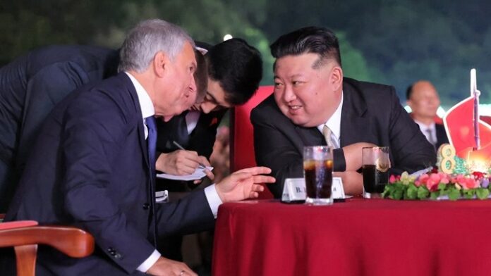 Ο Βολόντιν, στενός συνεργάτης του Ρώσου προέδρου Βλαντίμιρ Πούτιν, μετέφερε χαιρετισμούς από τον ισχυρό άνδρα του Κρεμλίνου και ευχαρίστησε τον Κιμ για την υποστήριξη της Βόρειας Κορέας στην στρατιωτική επιχείρηση της Ρωσίας εναντίον της Ουκρανίας.