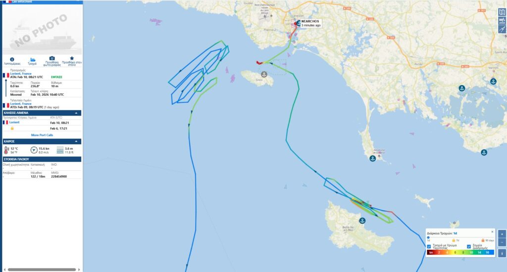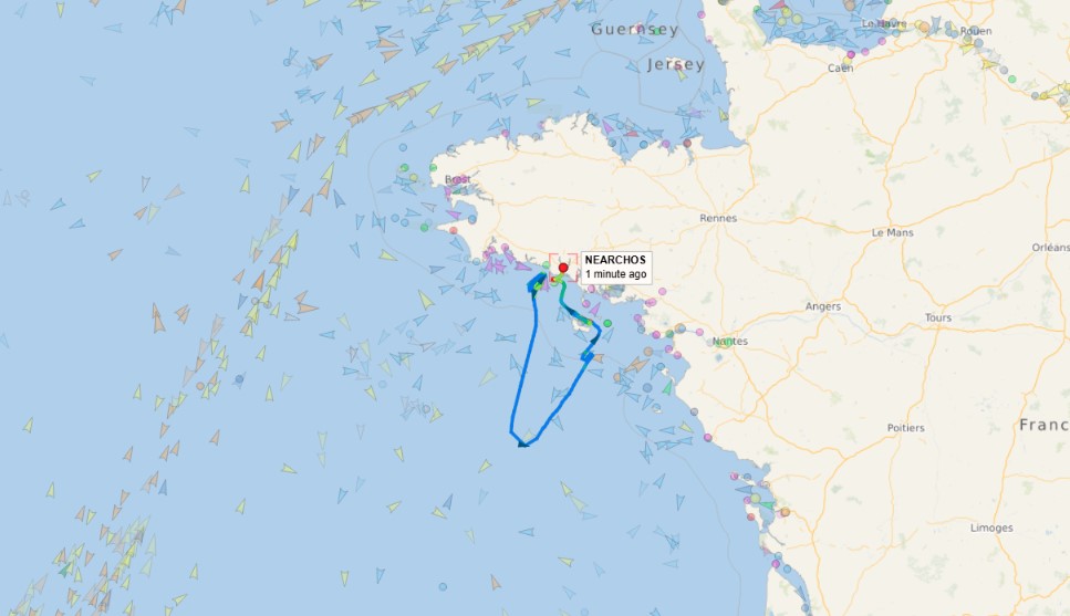 Παραθέτουμε τον πλου της ΝΕΑΡΧΟΣ χθες, όταν αναχώρησε στις 10:40 ώρα Γκρήνουιτς και επέστρεψε στη Λοριάν στις 08:21 σήμερα.