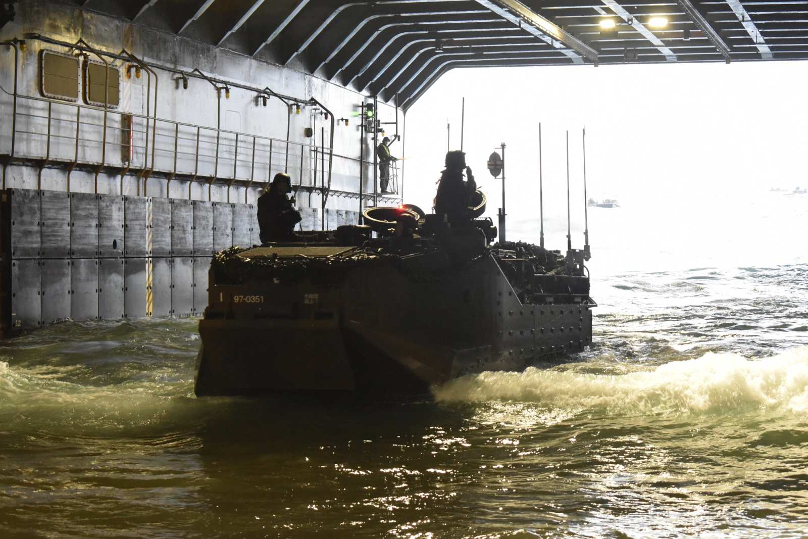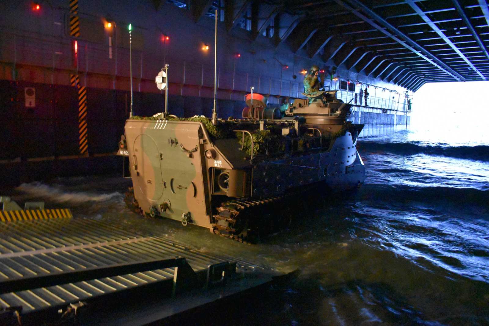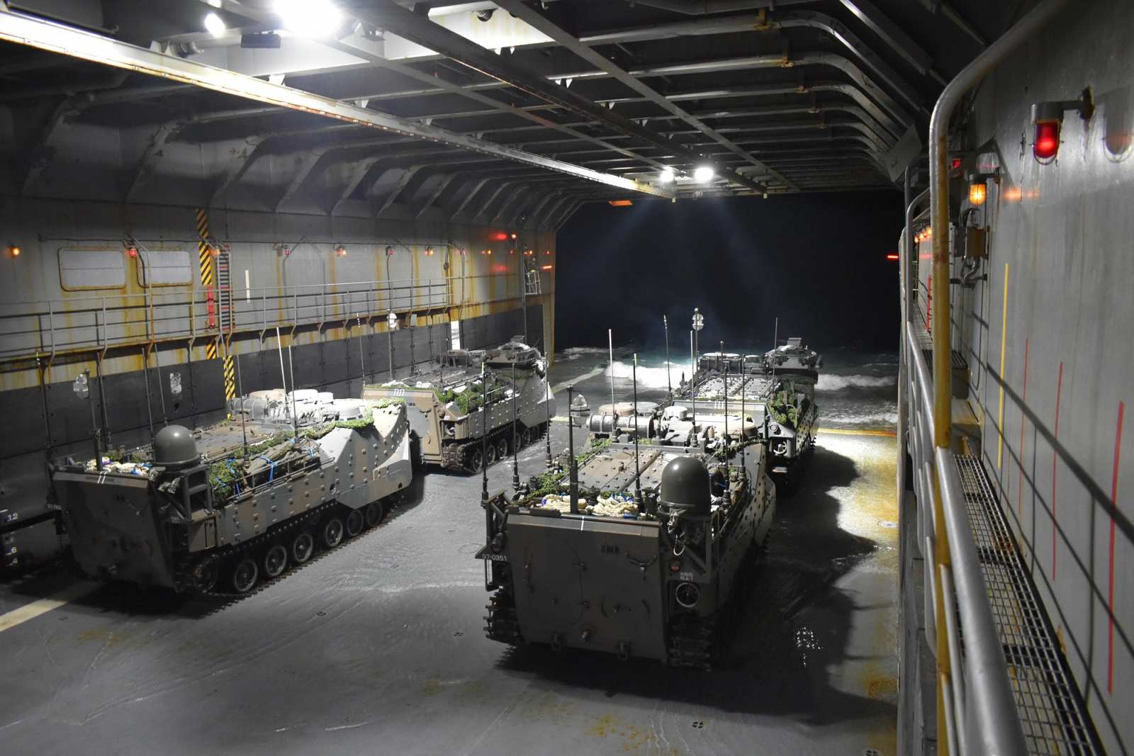 Αφού έχουν ξεκινήσει οι ομάδες διείσδυσης, μέσα στα Πλοία Αμφίβιων Επιχειρήσεων, έχει ξεκινήσει η προετοιμασία για την αναχώρηση των AAV-7A1. Τα οχήματα, φορτώνονται με υλικά και πυρομαχικά και τις ομάδες πεζοναυτών. Αν φέρουμε στο μυαλό μας τις παλαιότερες σκηνές όπου πεζοναύτες κάνουν καταρρίχηση από δίκτυα στα πλαινά των πλοίων για να μπουν στις αποβατικές ακάτους, καταλαβαίνουμε τι σημαίνει να μπορούν να φορτωθούν “στεγνοί” και χωρίς ταλαιπωρία στα AAV-7.
