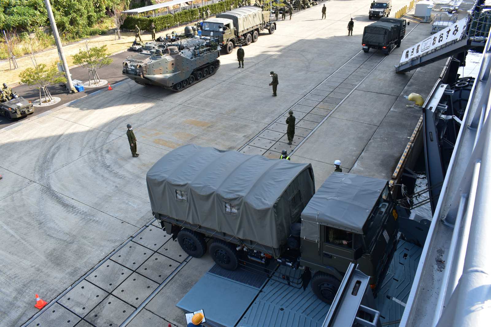 ….καθώς είναι αρκετά ευέλικτο. Στην Ιαπωνική άσκηση το όχημα φορτώνεται από μια απλή πλαϊνή ράμπα στο πλοίο Αμφίβιων Επιχειρήσεων.