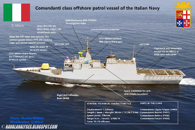 Το Ιταλικό Ναυτικό (Marina Militare) εχει σε υπηρεσία αρκετά και ικανά ΠΑΘ, προκειμένου να εκτελεί αποστολές με χαμηλότερο κόστος από μια φρεγάτα. Εμείς εστιάζουμε στην κλάση Comandanti, τα 4 πλοία της οποίας καθελκυστήκαν το 2000-2001. Ένα απλό πλοίο 1.500 τόνων, 88,5 μέτρων, με αρκετές δυνατότητες, που αξίζει να το δούμε προσεκτικά. Μια ενδιαφέρουσα ανάλυση της κλάσης μπορείτε να διαβάσετε στον ιστότοπο Navalanalyses.com.