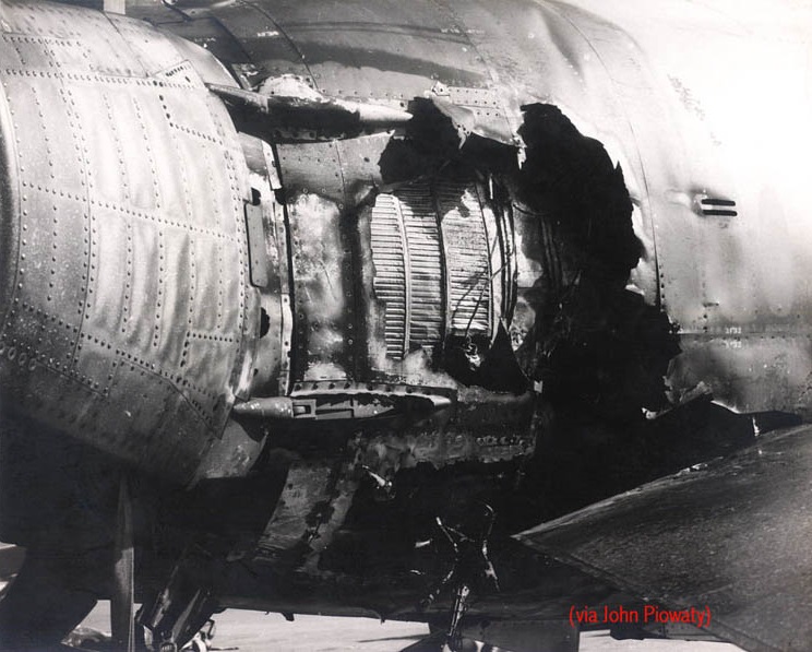 «Τρία, χτυπήθηκες» ακούστηκε από το «Bear Two». Ο επικεφαλής του σχηματισμού βγήκε στην συχνότητα. «Ο Δύο δεν χτυπήθηκε αλλά Τέσσερα, εσύ χτυπήθηκες. Έχεις πάρει φωτιά και έχεις λαμπαδιάσει ένα μίλι». Χωρίς όργανα, ο Σμηναγός Piowaty έκοψε ταχύτητα –πολλοί χειριστές είχαν σπάσει και τα δύο τους πόδια σε εγκατάλειψη με μεγάλη ταχύτητα όταν τα αεροπλάνα τους βρέθηκαν εκτός ελέγχου λόγω απώλειας υδραυλικών– και άρχισε άνοδο για τα 12.000 πόδια σε μια προσπάθεια να φτάσει στην αεροπορική βάση Udorn, στα σύνορα της Ταϊλάνδης με το Λάος.