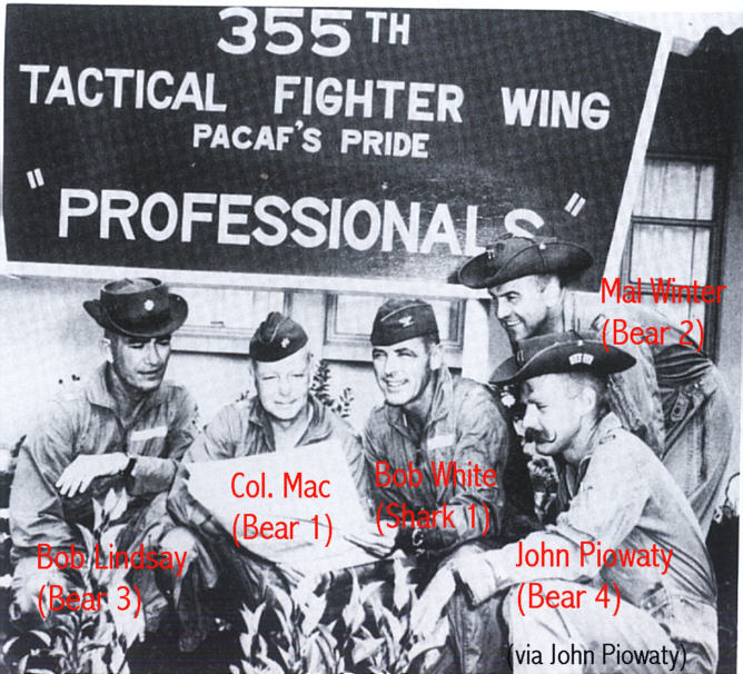 Επικεφαλής του Σμήνους «Shark» θα ήταν ο Σμήναρχος Robert «Bob» White (μερικά χρόνια αργότερα θα πετούσε με το πυραυλοκίνητο X-15) ενώ οι Διοικητές Σμηνών θα ηγούντο των αντιστοίχων σχηματισμών. Ο Σμηναγός, τότε, Piowaty θα ήταν ο Νο 4 του «Bear Flight».