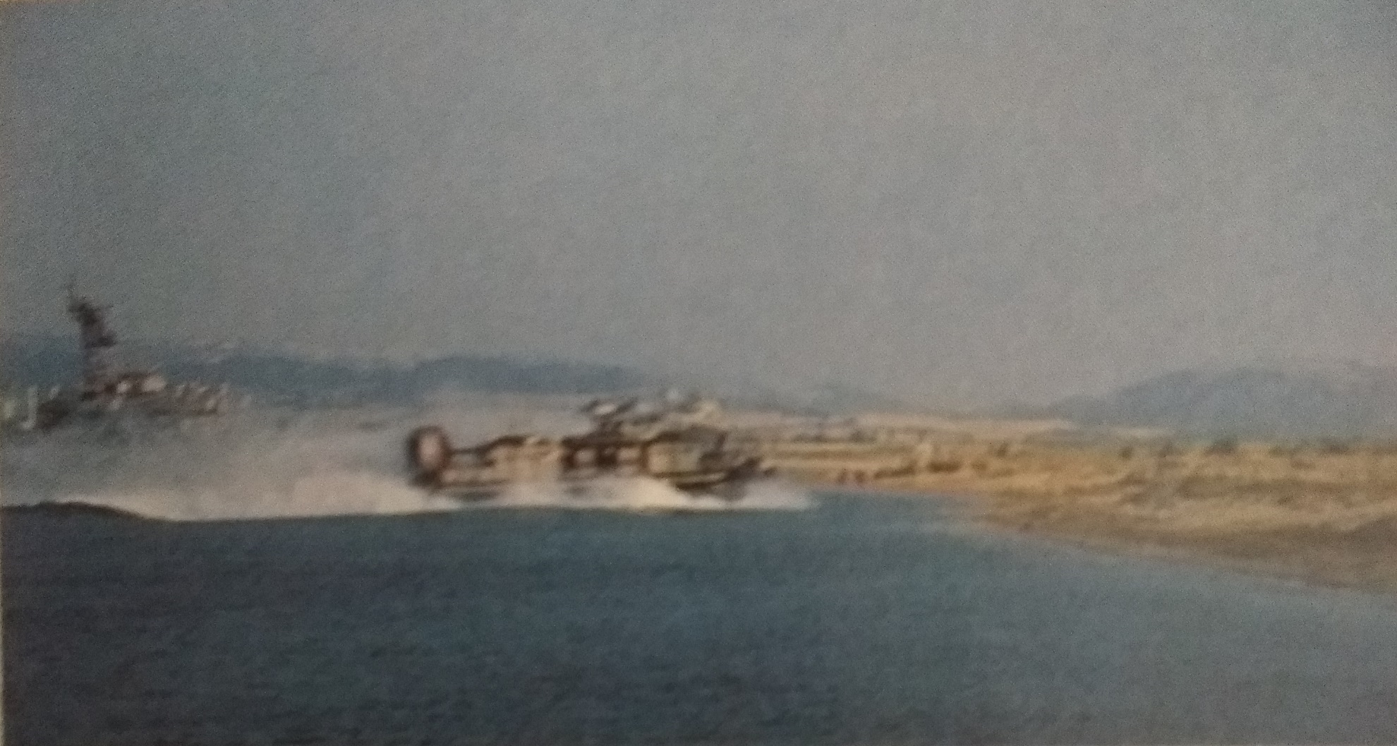 Διαδοχικές φάσεις εξόδου ενός LCAC στην ακτή καθώς περνάει μπροστά από το Α/Γ ΡΟΔΟΣ: