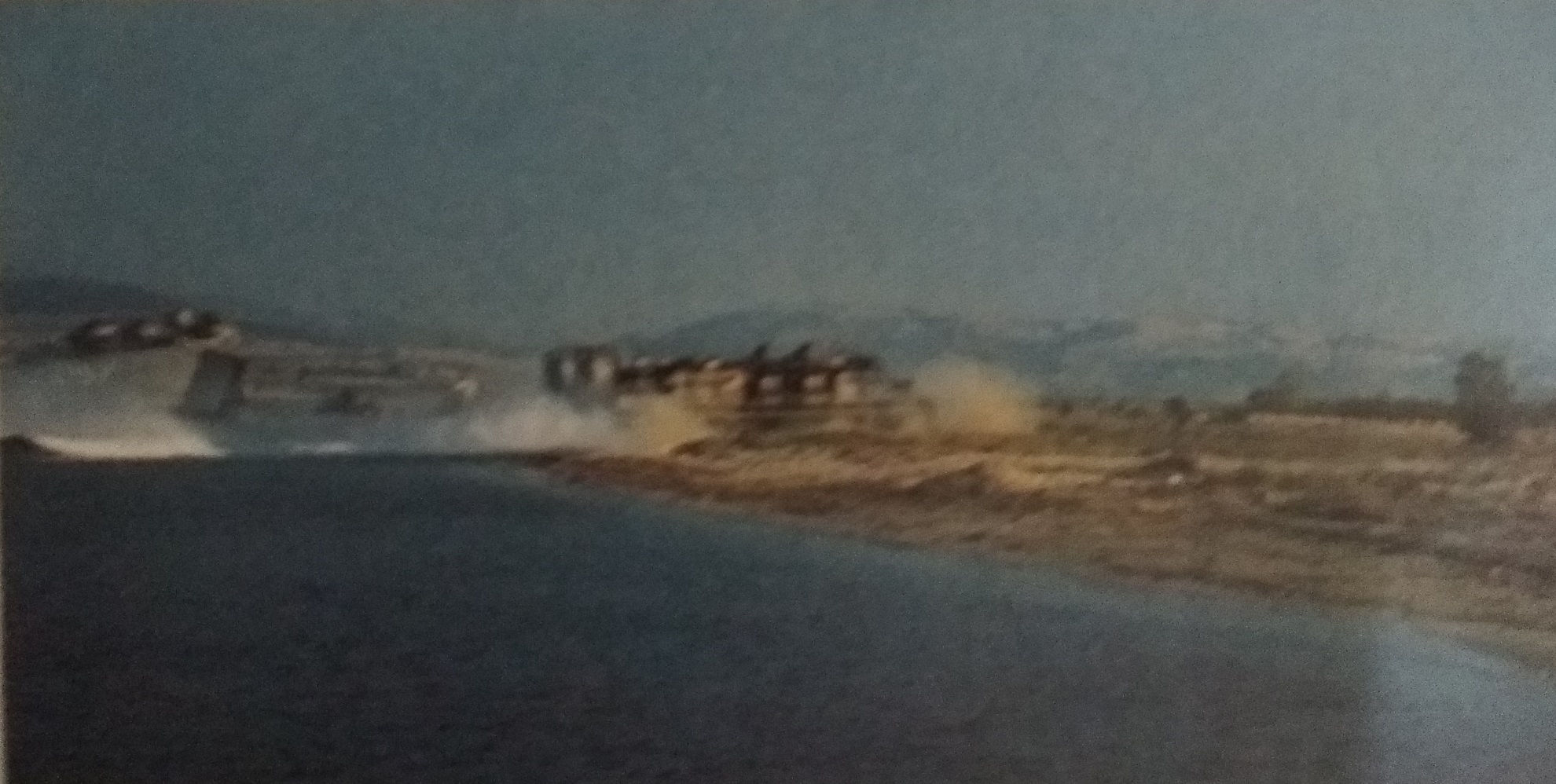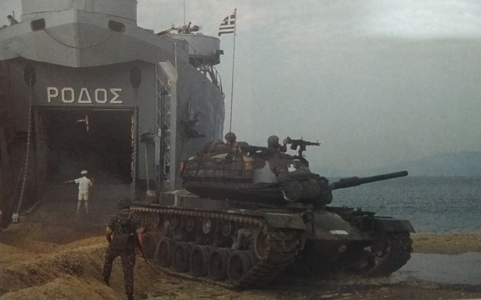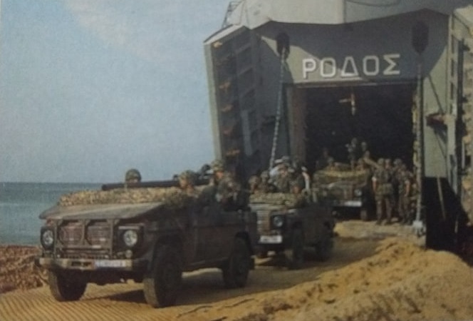 Φτάνοντας κοντά στην ακτή, η δύναμη συμπληρώθηκε από το Α/Γ ΡΟΔΟΣ που προσγειαλώθηκε στα αριστερά μας. Σιγά-σιγά τα οχήματα άρχισαν να αφήνουν τα αποβατικά και να συγκεντρώνονται στην ακτή.