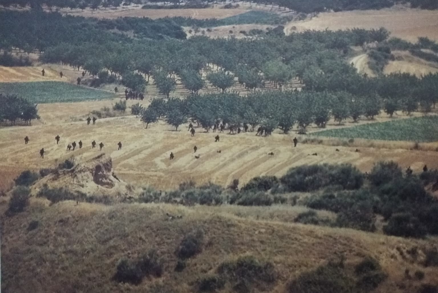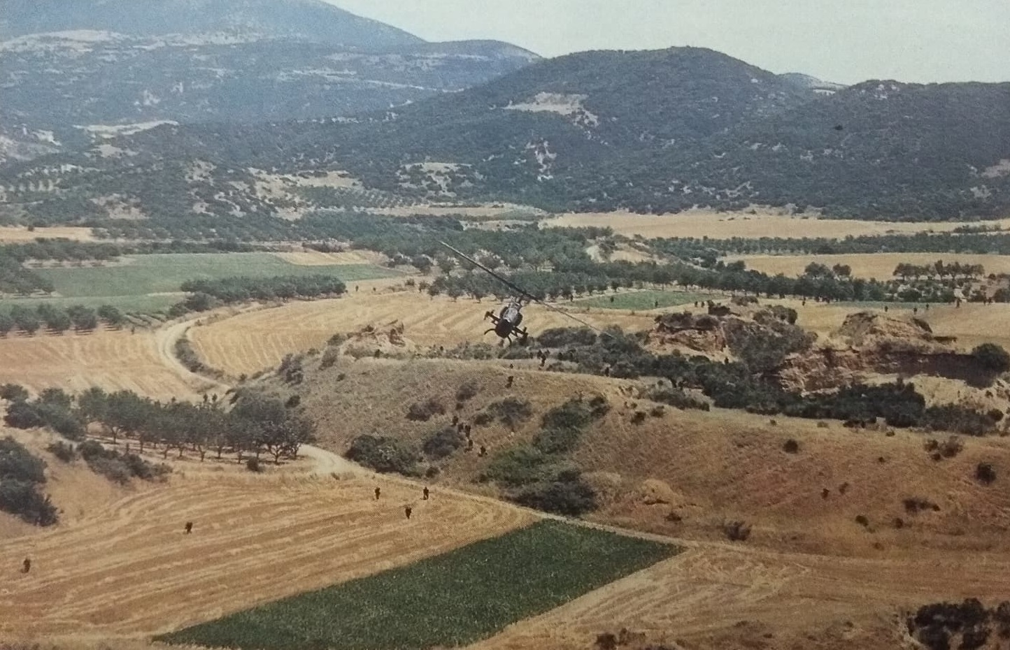 O καλοκαιρινός ήλιος είχε ανέβει ψηλά, όταν το φορτηγό με τους ταλαιπωρημένους δημοσιογράφους έφτασε στην περιοχή που θα αποτελούσε και την κλιμάκωση της δράσης. Τουλάχιστον για την δημοσιογραφική ομάδα στην οποία μετείχαμε. Με σχετική δυσκολία, ανεβήκαμε στο ύψωμα που κατόπτευε όλη την περιοχή και θα αποτελούσε το στόχο του “εχθρού”. Απέναντι δέσποζε το Παγγαίο Όρος και μπροστά και δεξιά μας υπήρχε μια εδαφική έξαρση. Σύμφωνα με το σενάριο της άσκησης στα σημεία αυτά υπήρχαν ακόμα αγκιστρωμένα τμήματα που απέκοπταν τη δίοδο των τμημάτων της απόβασης προς την ενδοχώρα.